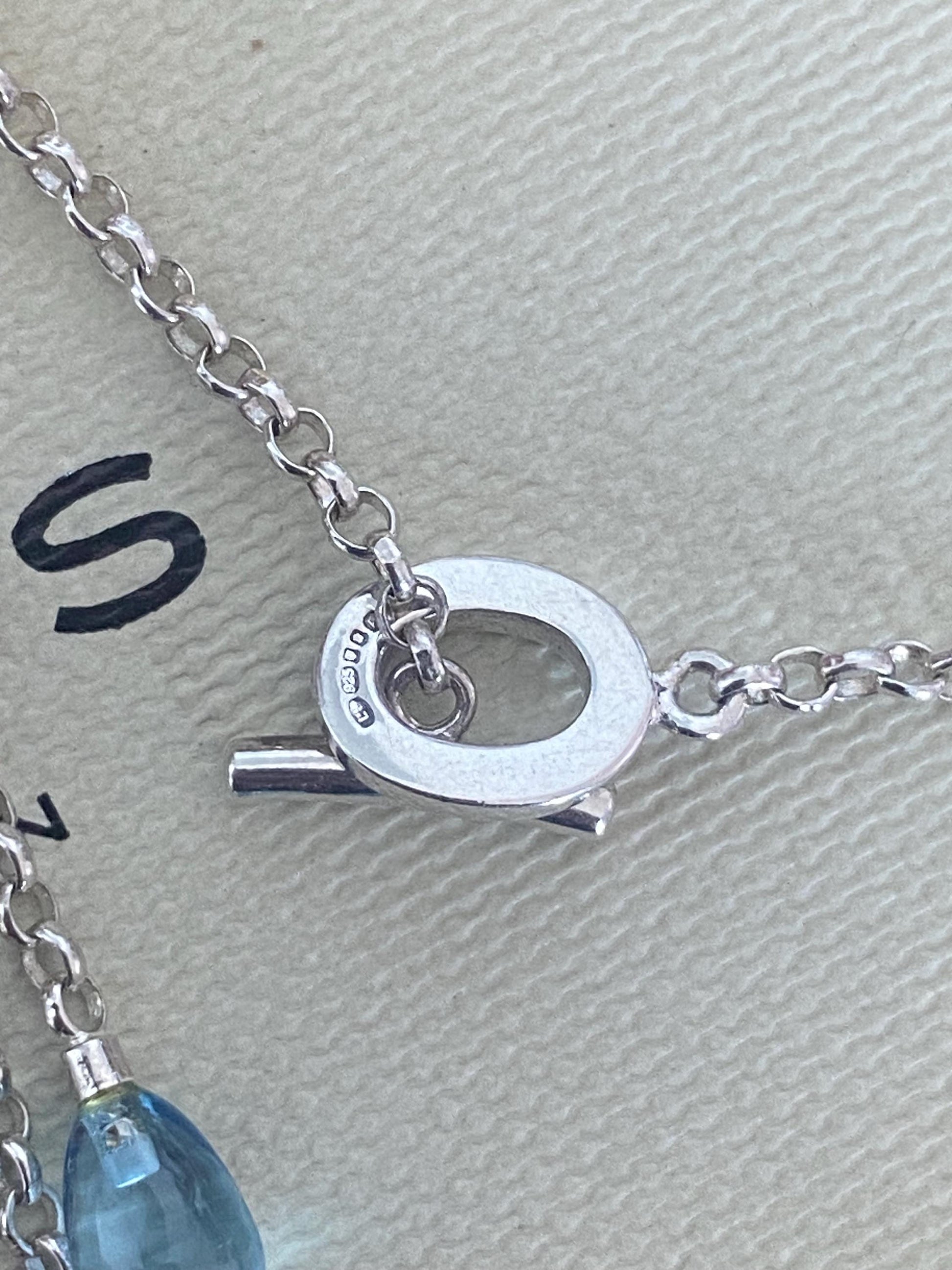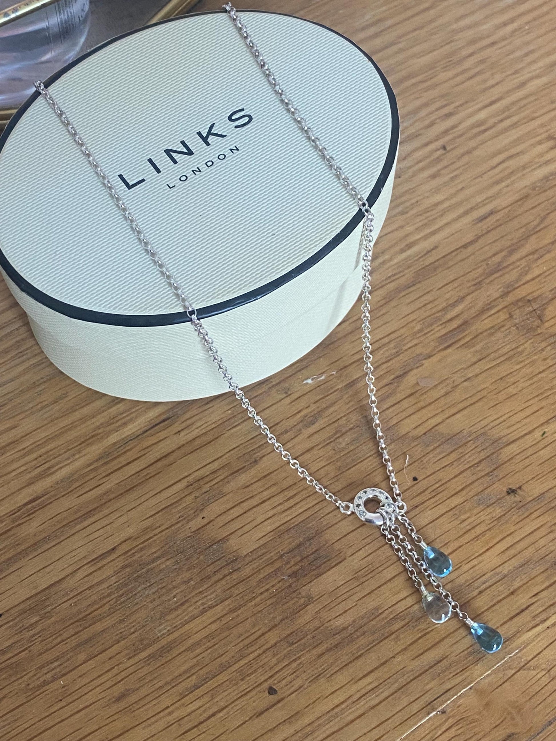 Beautiful vintage ultra rare links of London teardrop necklace with blue topaz stones, sterling silver