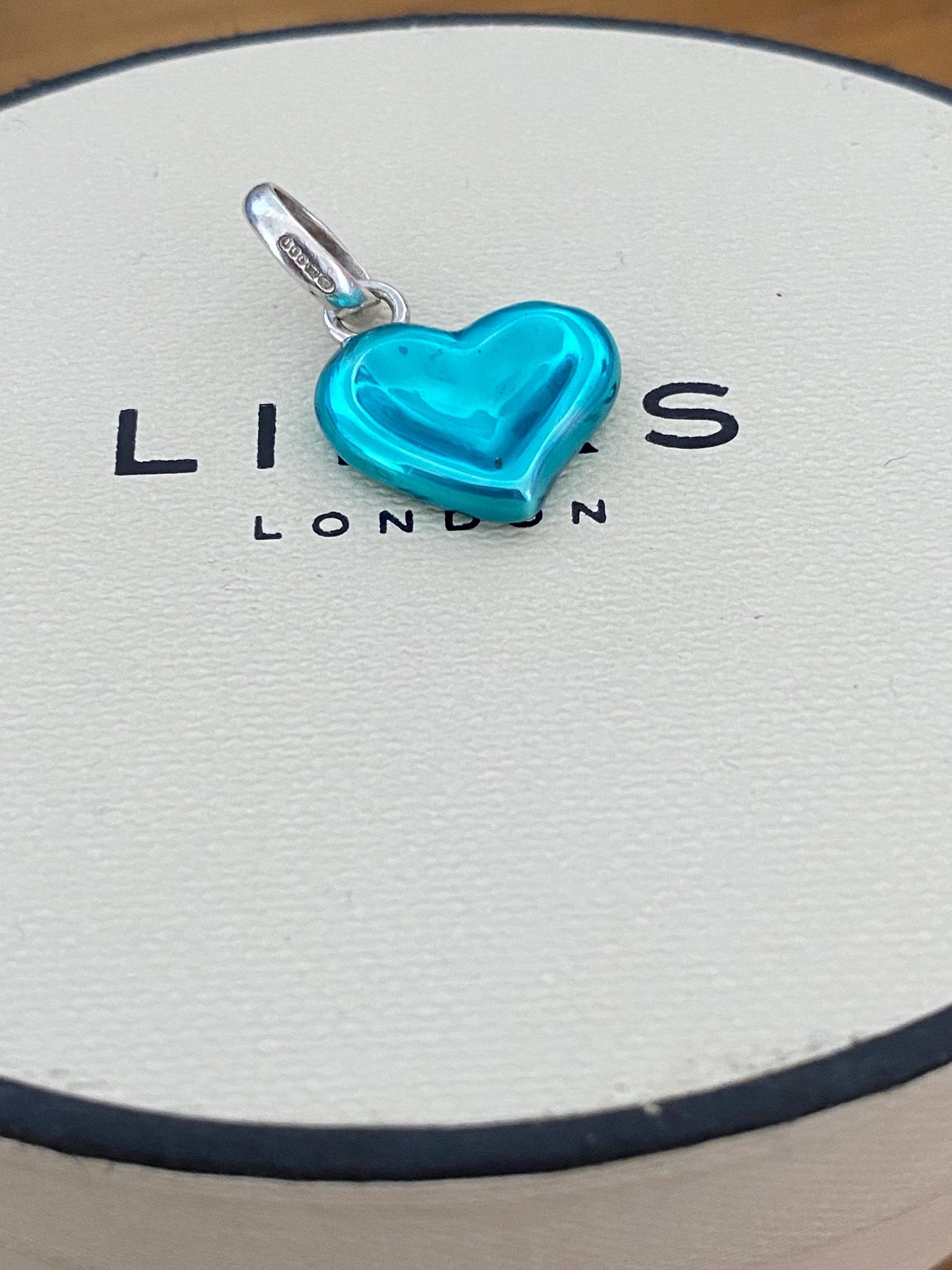 Beautiful genuine rare hallmarked Links of London sterling silver and blue enamel thumbprint heart charm