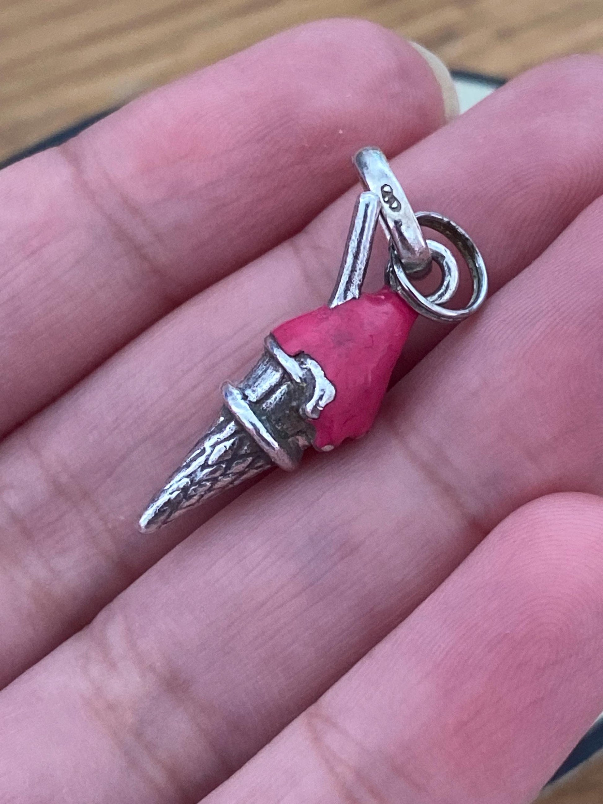 Beautiful genuine rare hallmarked Links of London sterling silver and pink enamel ice cream cone charm