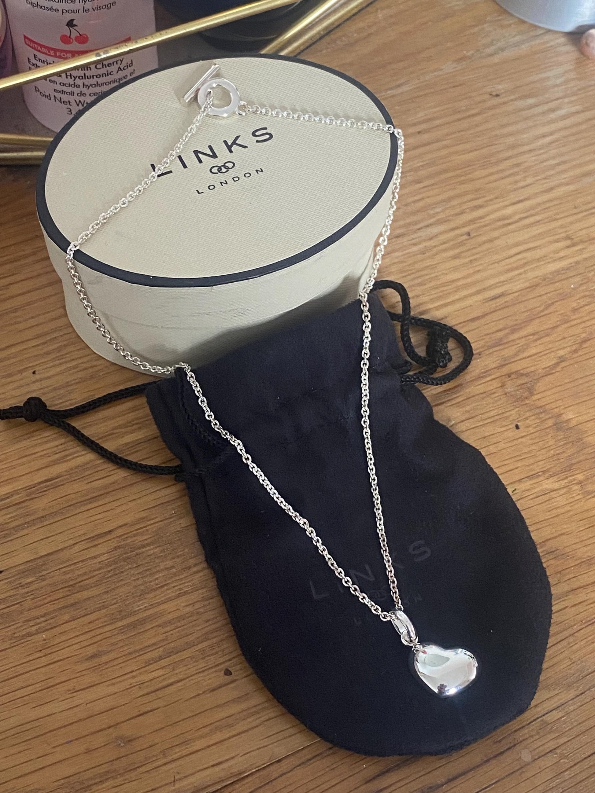 Beautiful Links of London Toggle Necklace with a Links of London flat Heart Charm, Sterling Silver, Hallmarked, with box