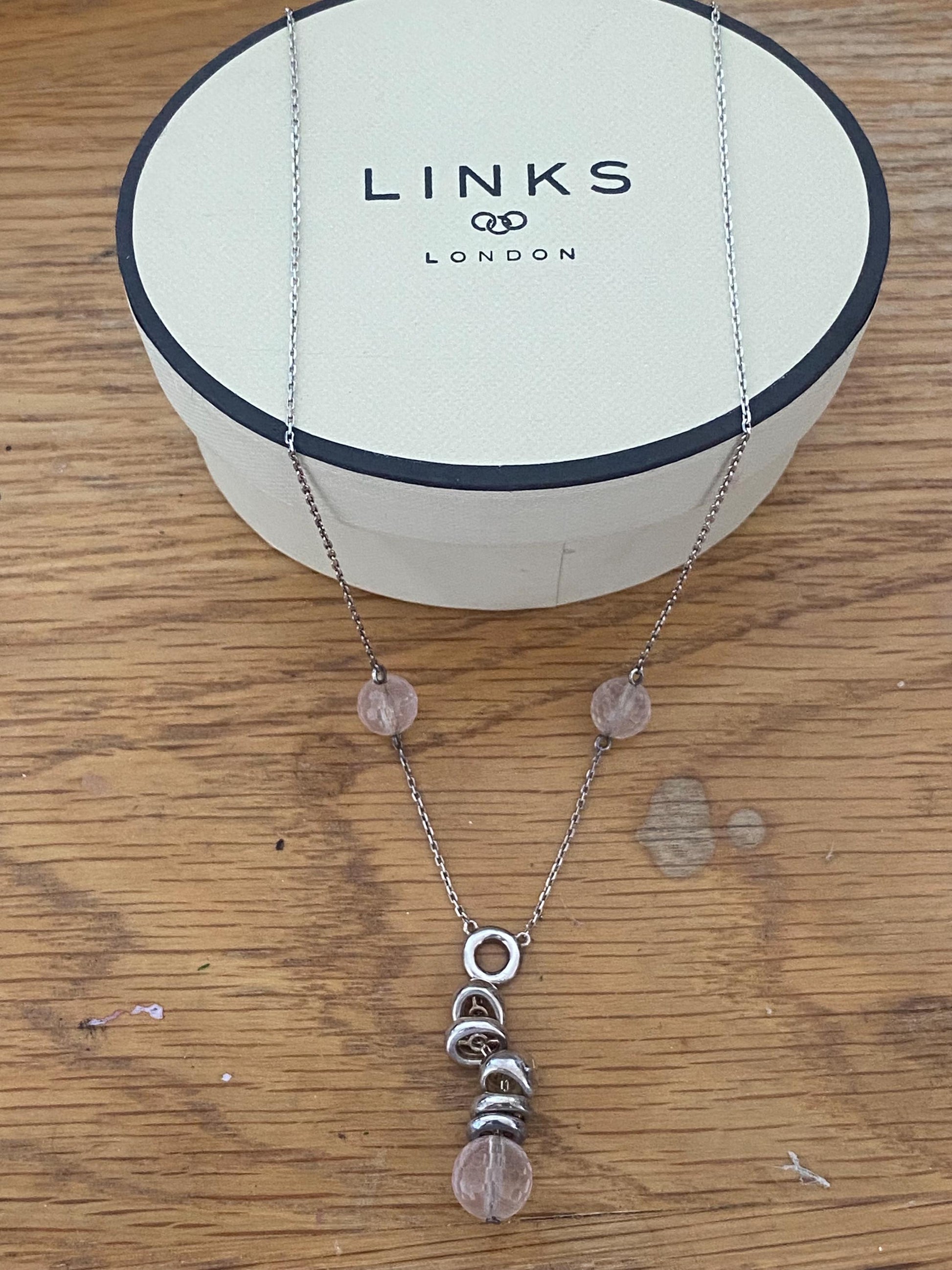 Beautiful unique Links of London Rose Quartz Sweetie Drops Necklace, Sterling Silver, Stamped, s925, 45cms