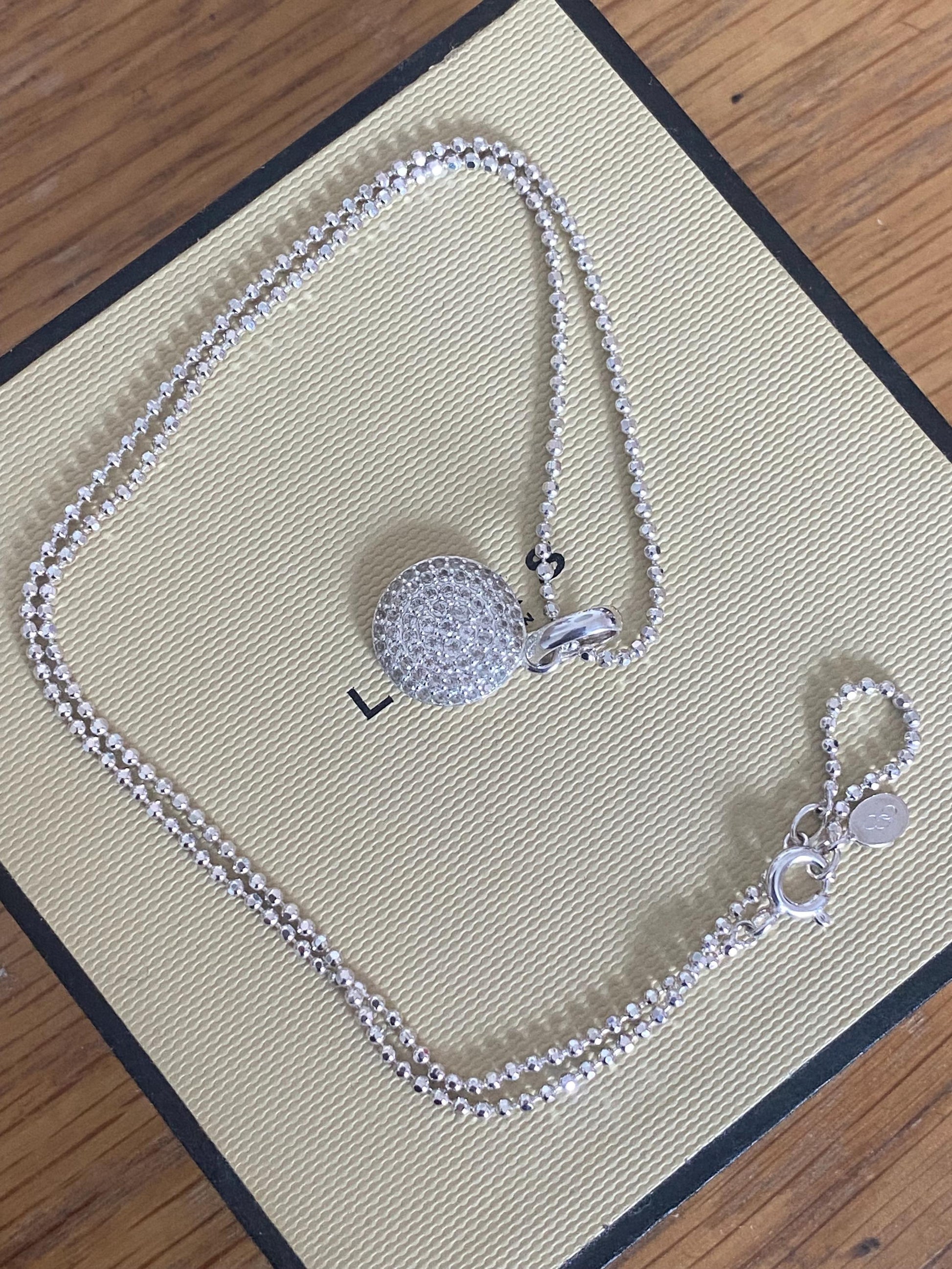 Beautiful vintage rare links of London pave circle necklace with clear sparkling topaz stones, sterling silver, with box
