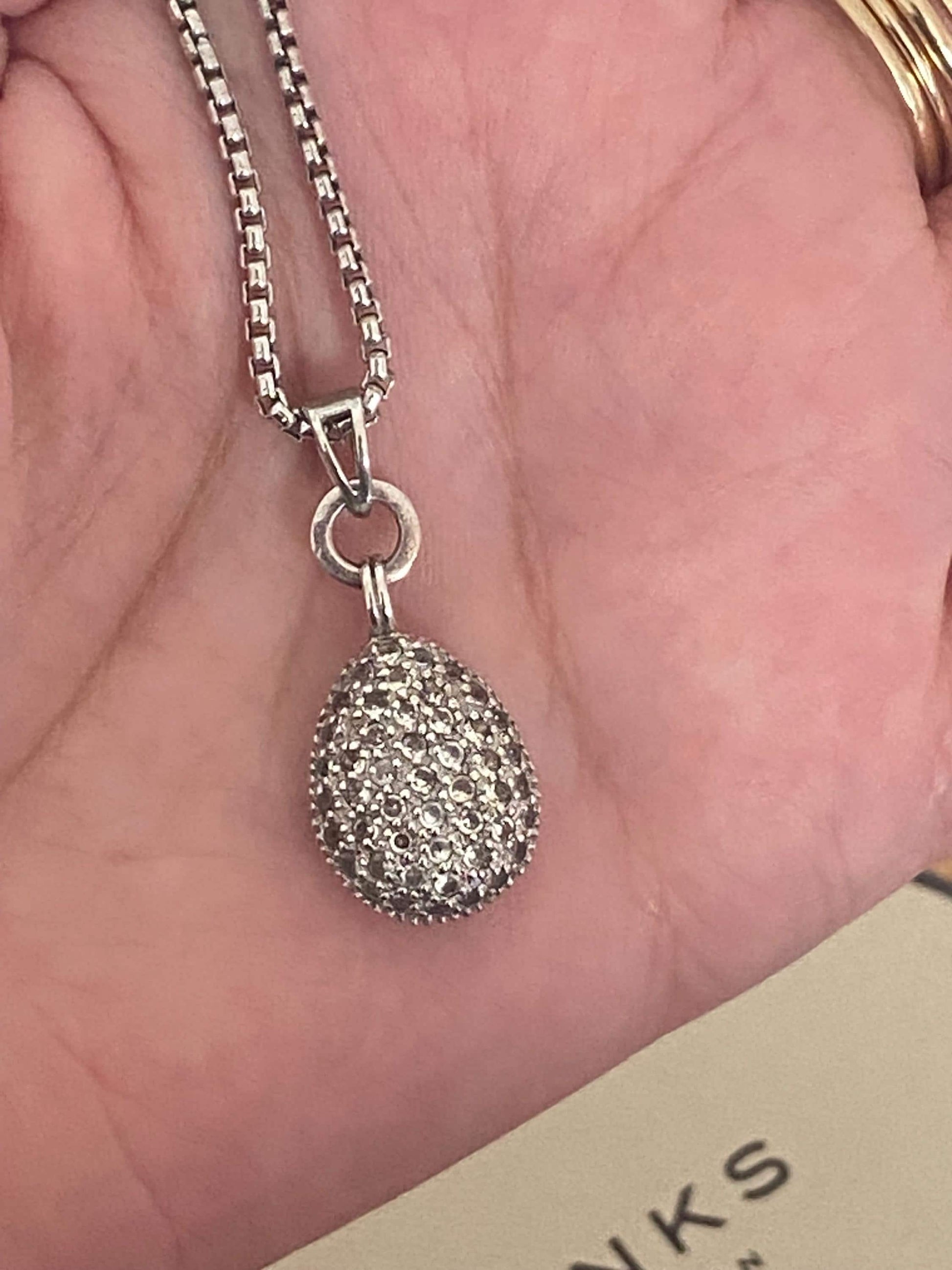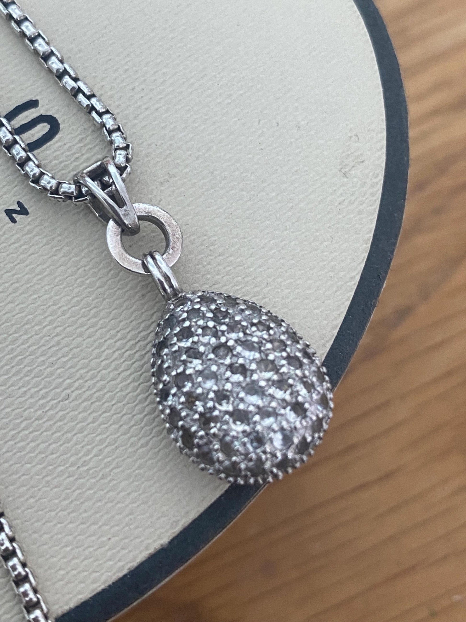 Spring-ring clasp, box chain, topaz-encrusted egg pendant