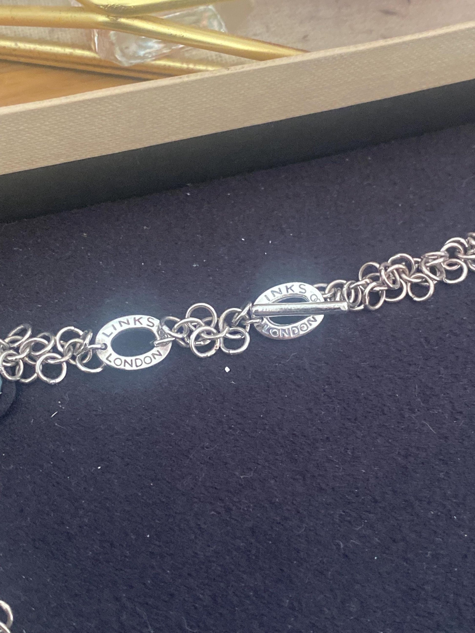 Beautiful vintage very rare links of London toggle necklace with clear and amethyst stones, sterling silver