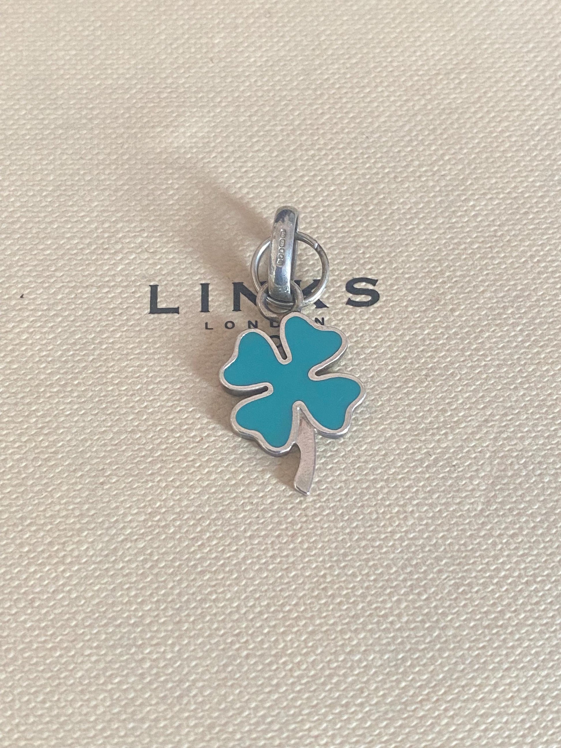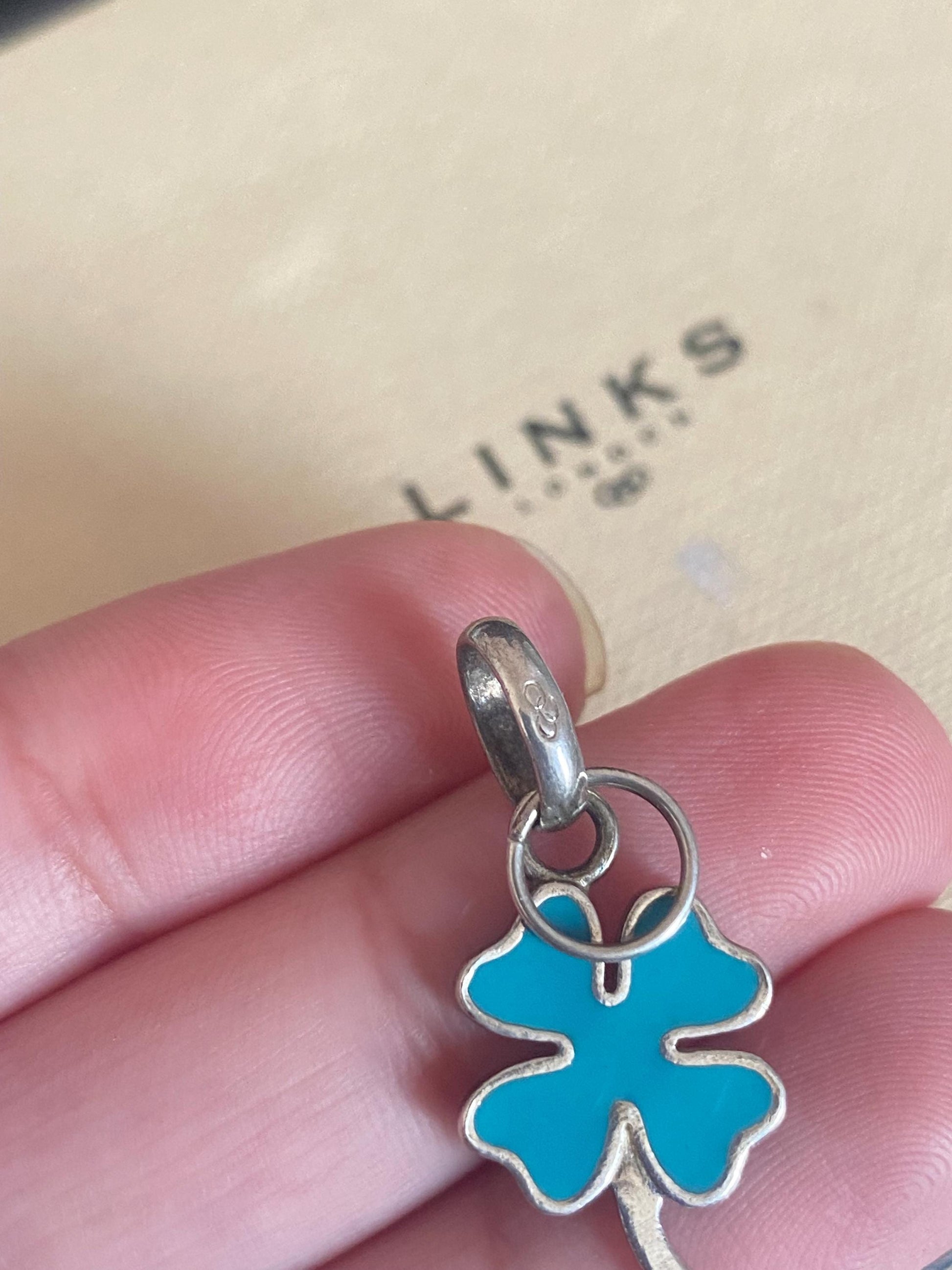 Genuine Links Of London Sterling Silver and blue enamel Lucky Four Leaf Clover Charm Vintage
