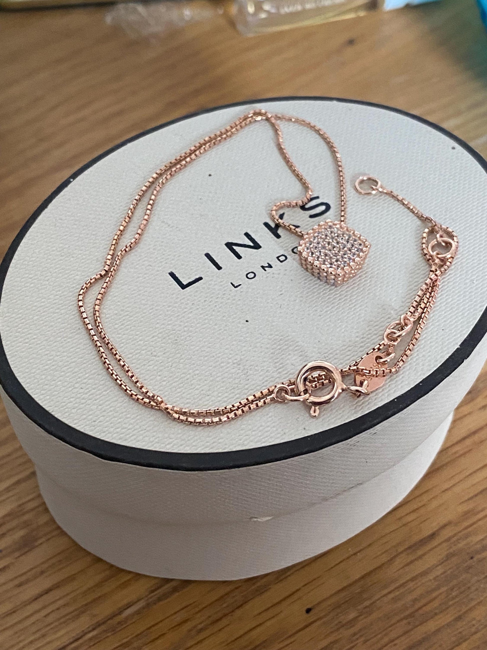 Gorgeous Links of London rose gold “pure” necklace, hallmarked, genuine