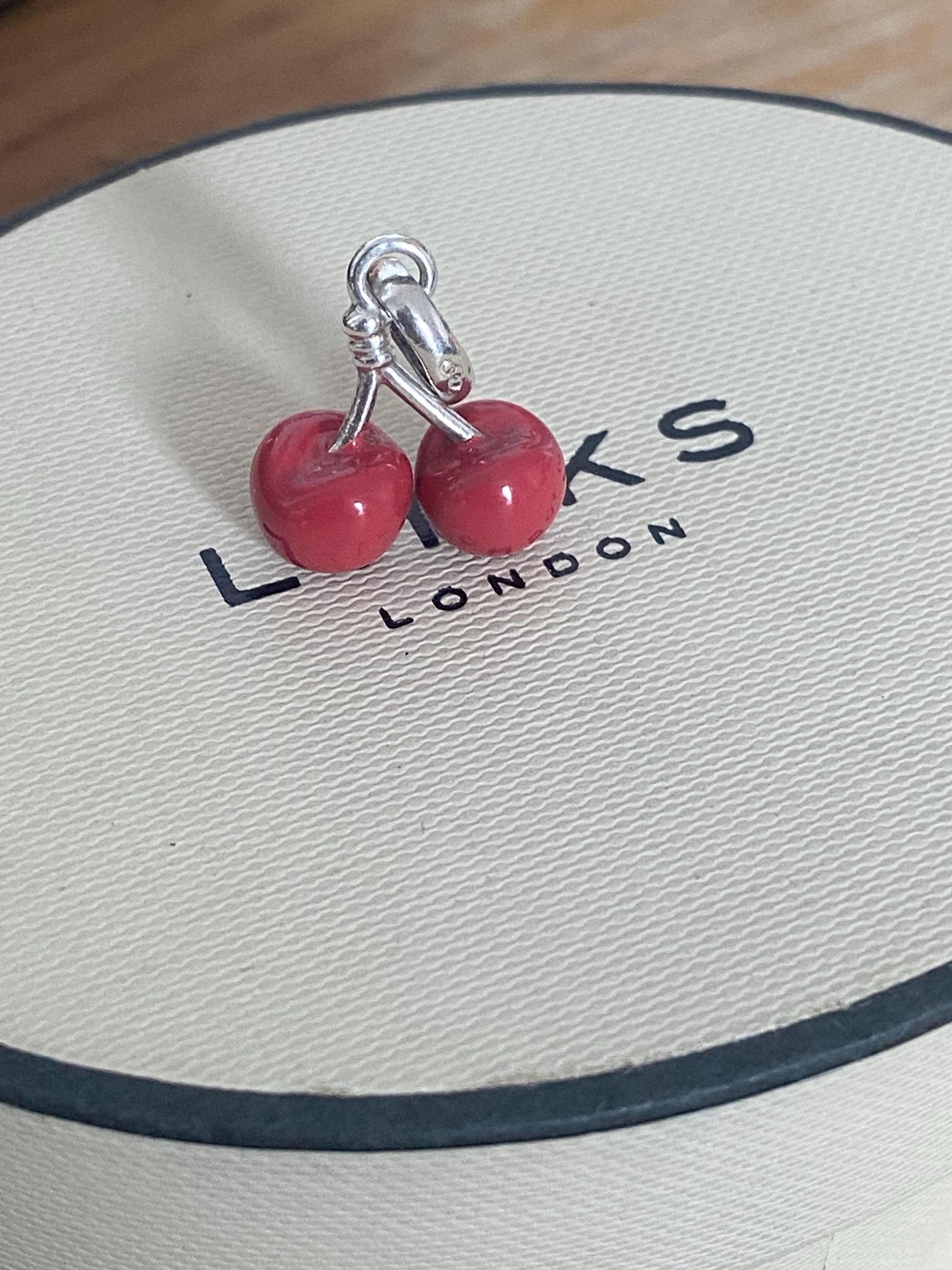 Links of London Rare cherries charm in sterling silver and enamel, red cherry charm