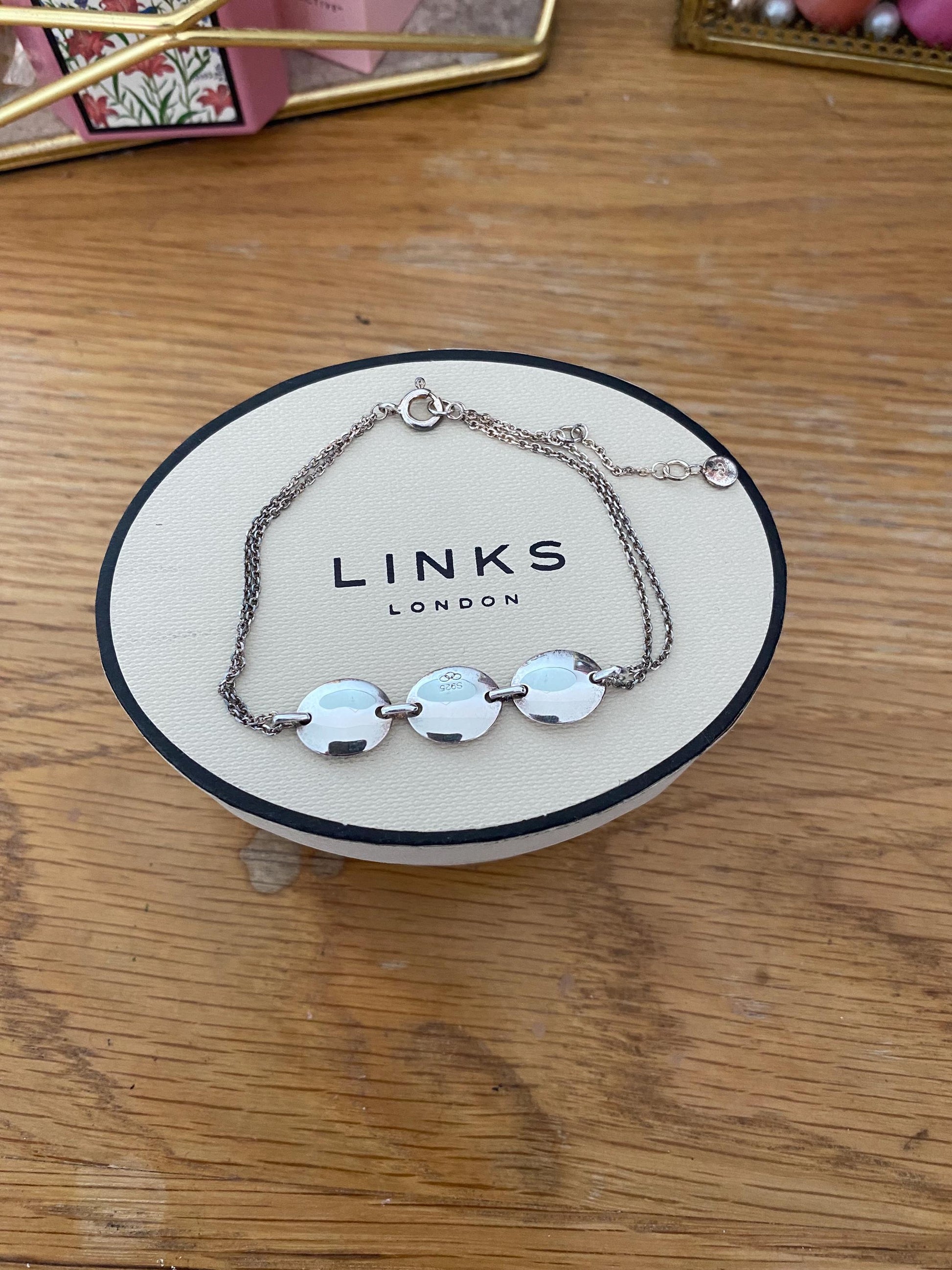 Links of London vintage rare Grace Sterling Silver 3 Station Bracelet