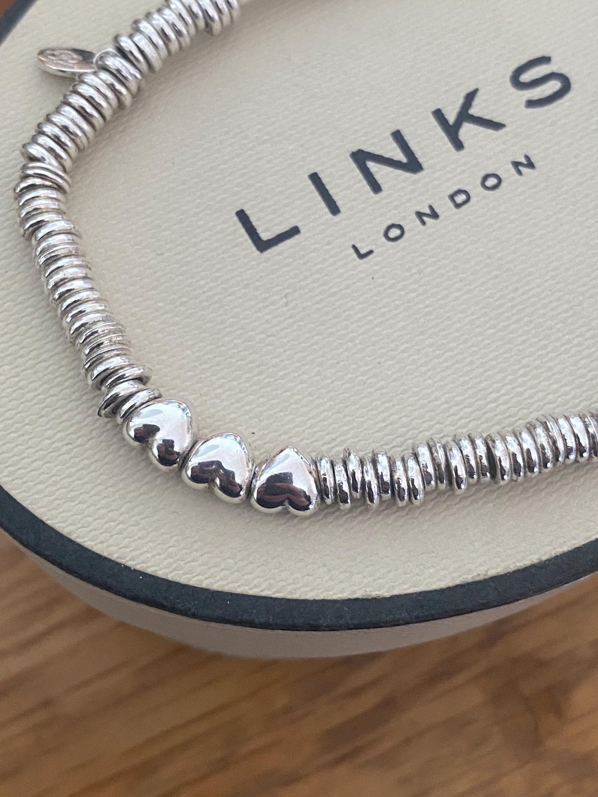 Links of London vintage rare xs sweetie heart bracelet, sterling silver, medium