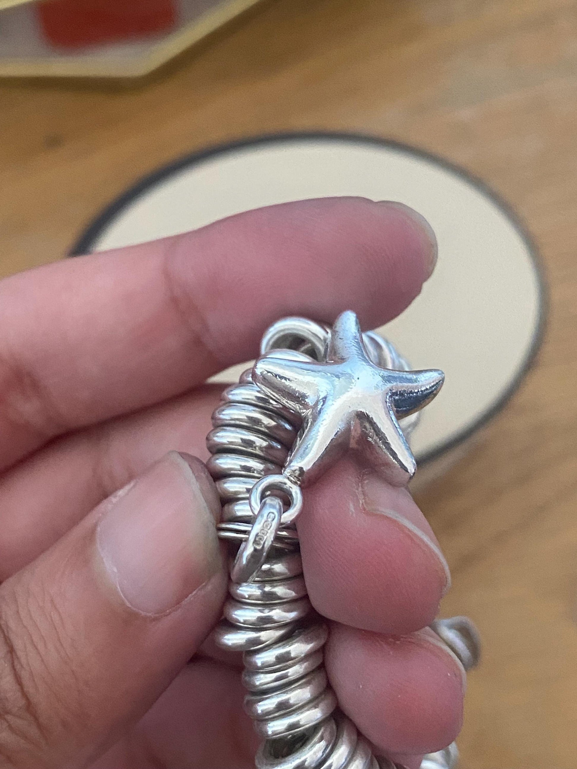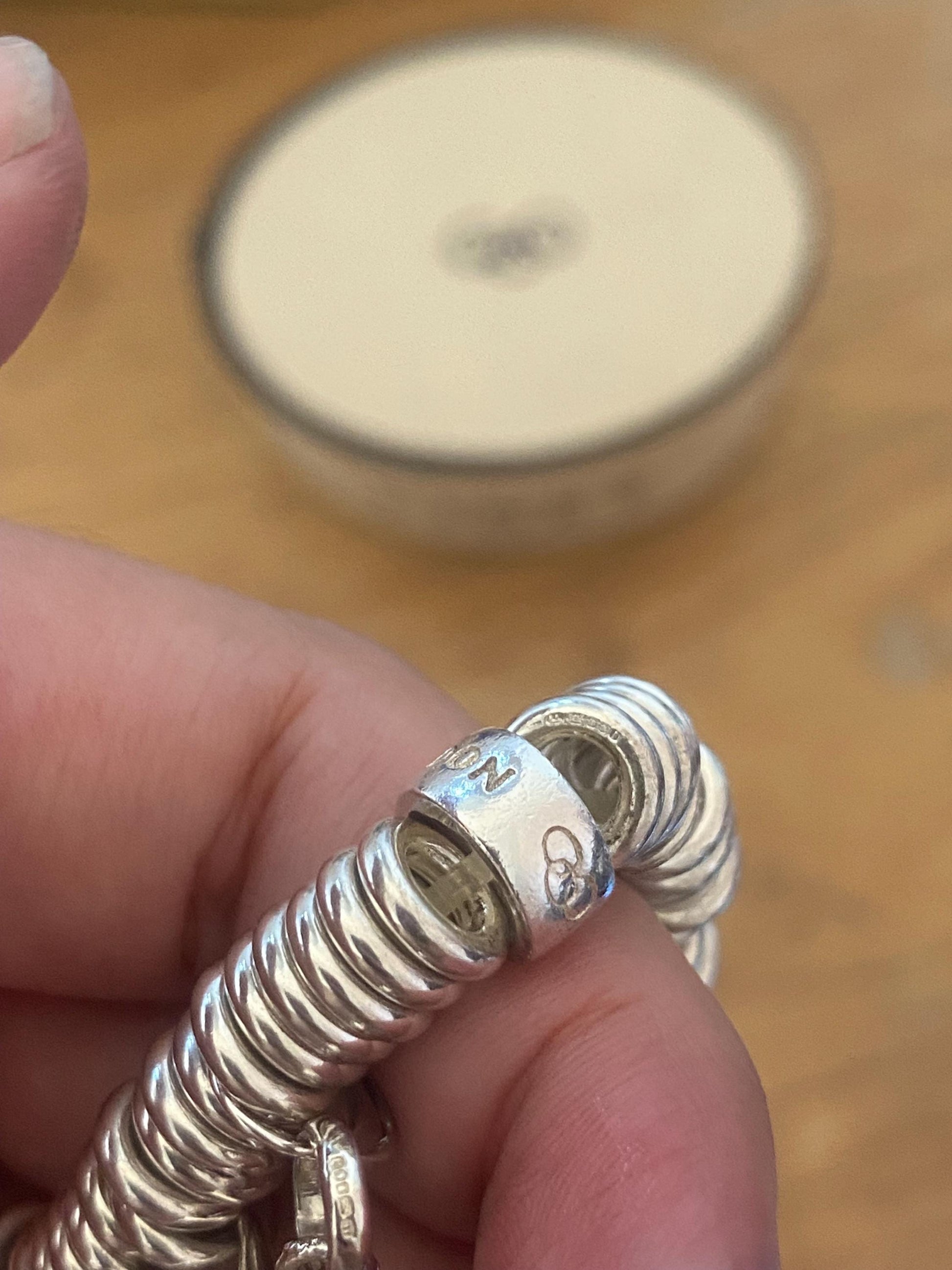 Lovely Links of London vintage rare sweetie bracelet with three beautiful charms, sterling silver, size medium