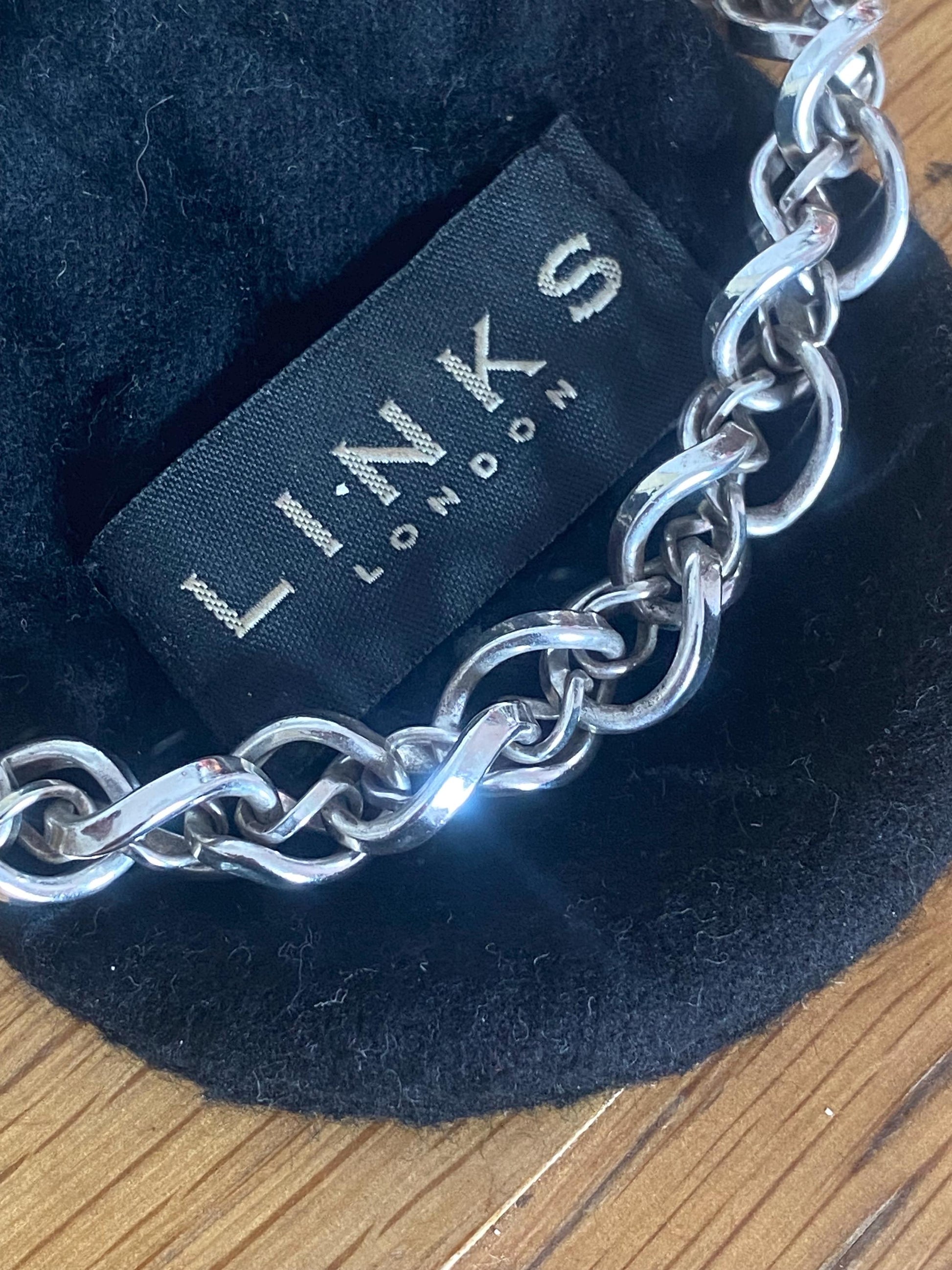 Rare heavy Genuine LINKS OF LONDON Hallmarked Silver infinity necklace With Box
