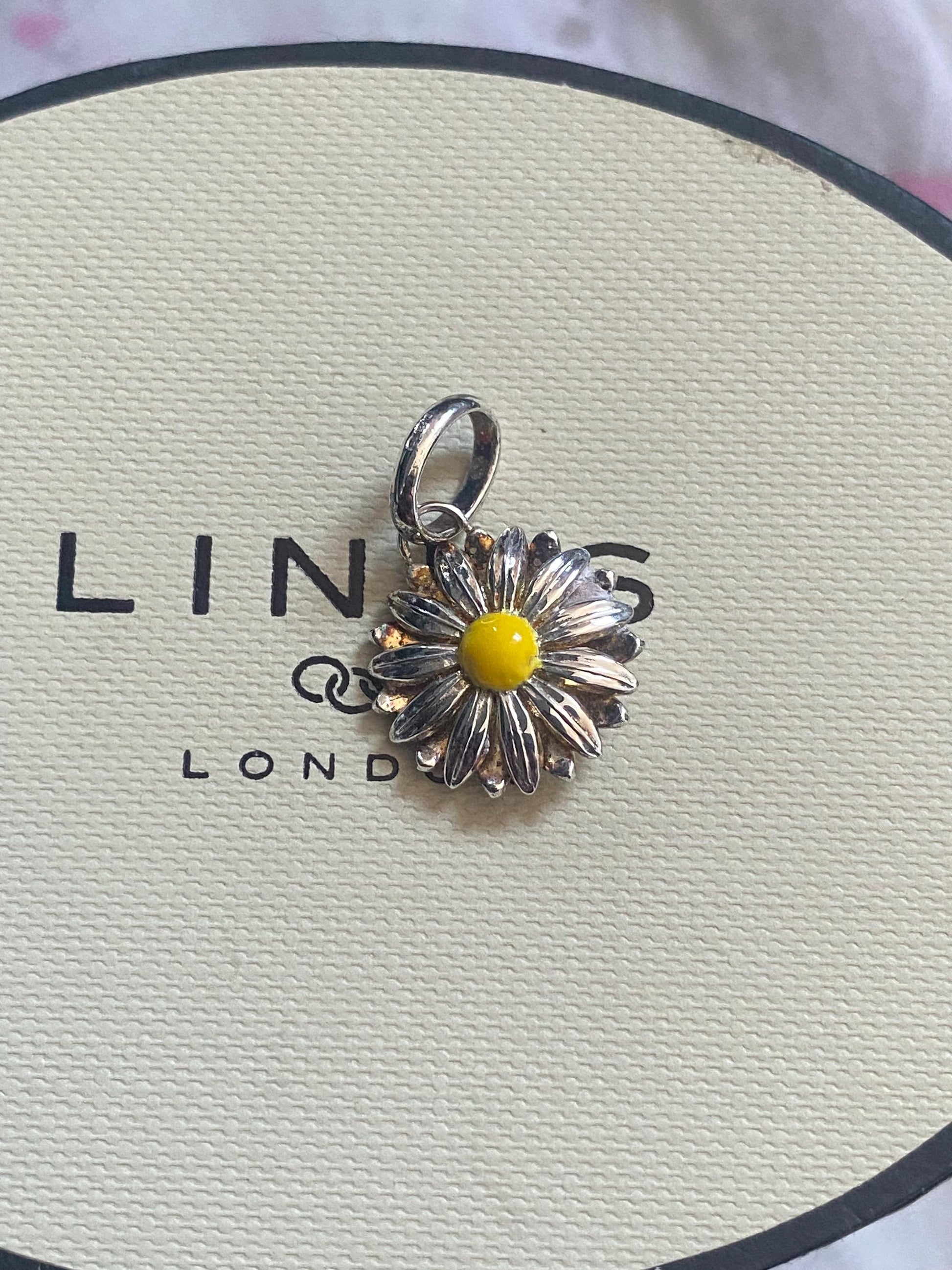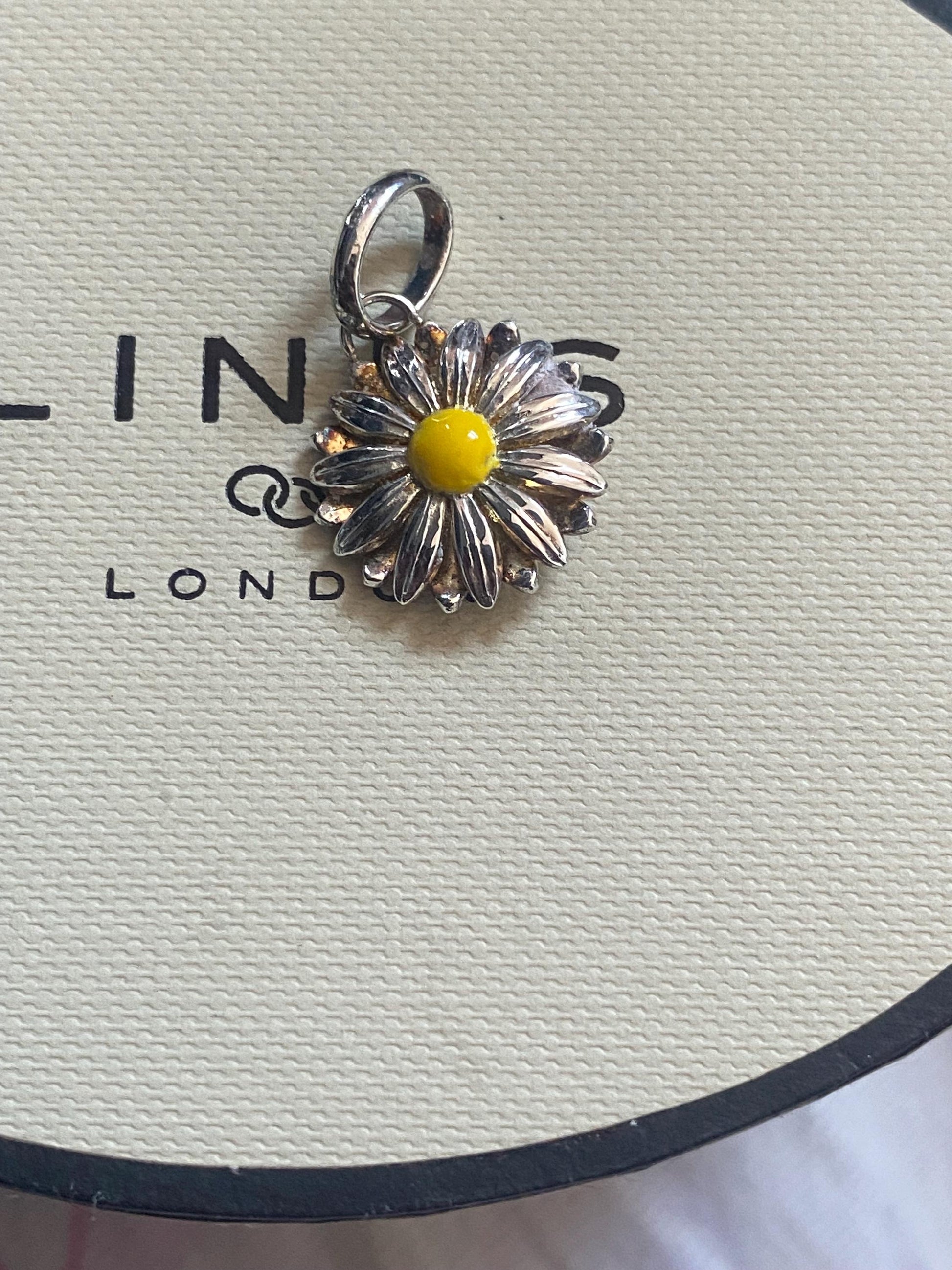 stunning Links of London daisy charm, sterling silver, yellow enamel, genuine